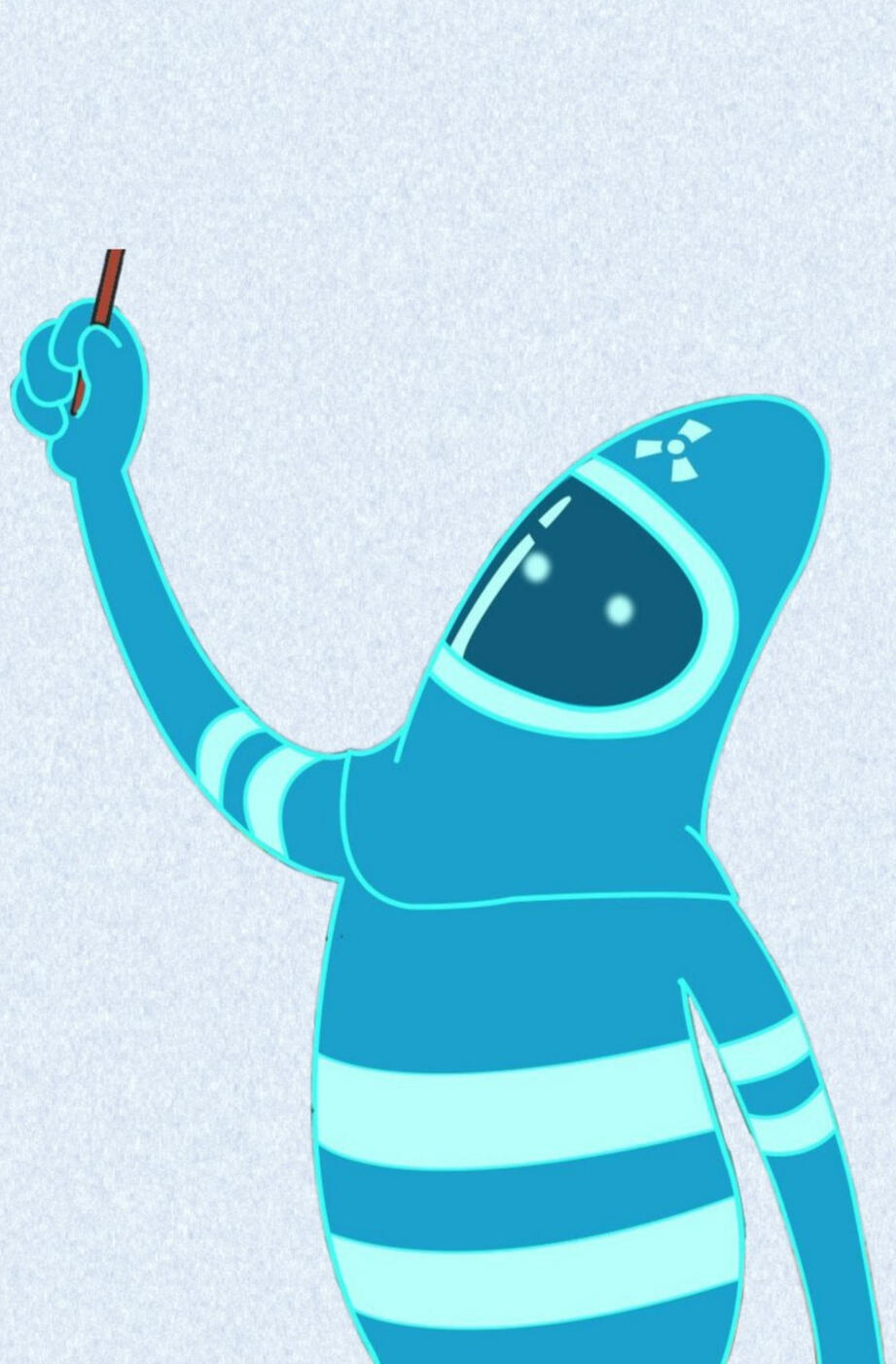 NOBYL is the assistant that runs NICOLA.T's errands & always shines because of the Cherenkov phenomenon that glows blue when nuclear fission reaches its critical point. Thinking that NOBYl is an adult who cares for its quiet & small friends tries to help its friends with frequent work.